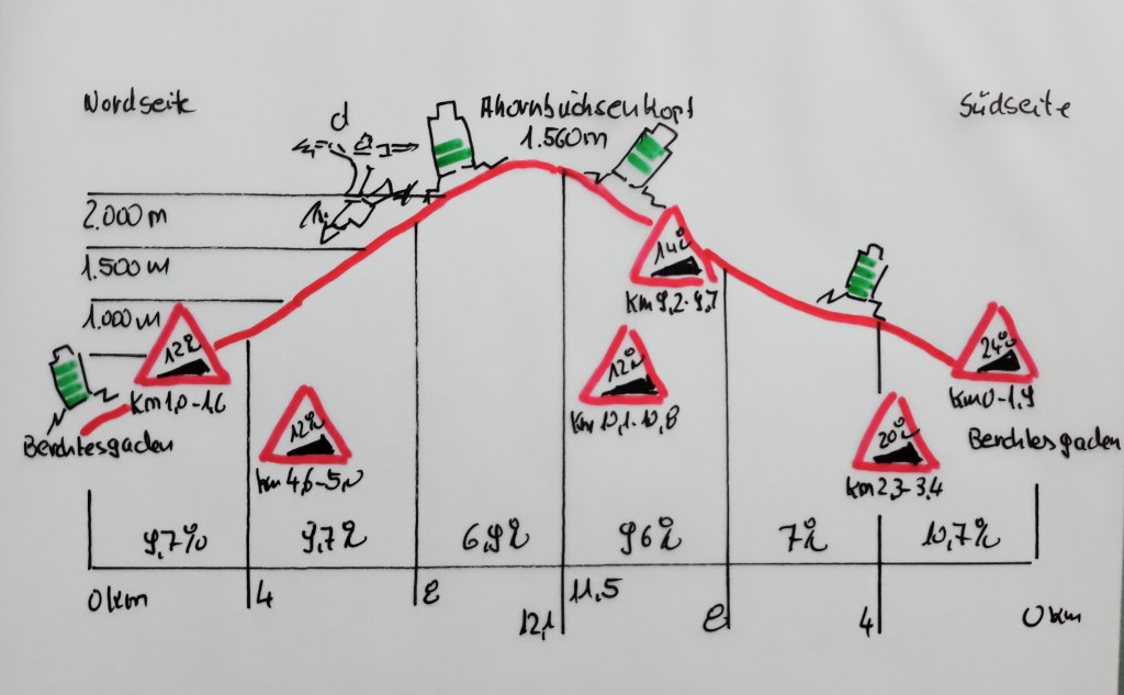 Start für meinen Lauf war im kleinen Ort Oberau, oberhalb von Berchtesgaden. Die Panorama-Ringstraße ist etwa 16 km lang, die größte Steigung beträgt 13 %. Mit maximal 1570 m ü. NN stellt sie die höchste durchgehende Straße Deutschlands dar. Die Scheitelstrecke verläuft teils auf österreichischem Staatsgebiet.