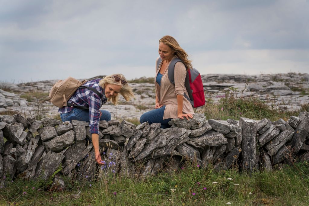 Eines heißt „Seaweed Walk/Talk/Taste Experience“. Wie der Name verrät, geht es dabei vorwiegend um Algen, genau genommen um Blasentang, eine Art Braunalge, die als Heilmittel beliebt ist, aber eben auch verzehrt werden kann. Wo und wie man dieses Superfood erntet? Oonagh zeigt es. Und vieles mehr. Verweist nebenbei auf Schmetterlinge, Dachse, Wildziegen sowie heimische Meeresbewohner wie Robben und Seevögel à la Papageientaucher und Trottellummen und erzählt von manchen der rund 2.700 und bis zu 6.000 Jahre alten Denkmälern, die im Burren registriert sind.