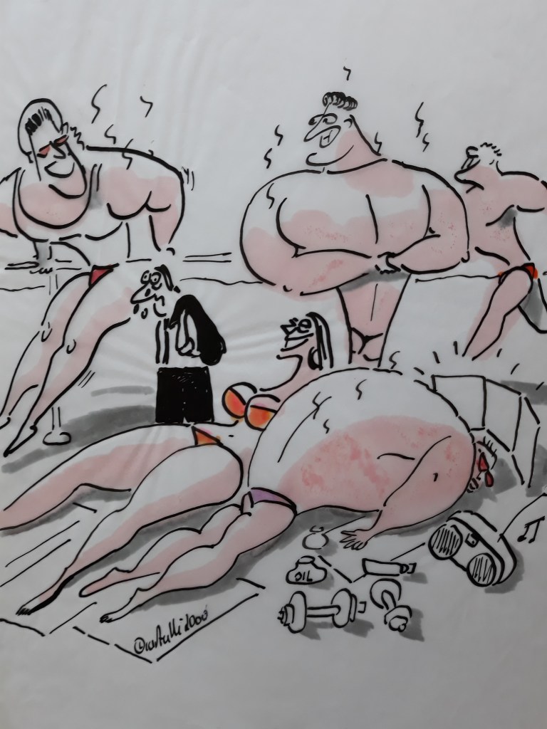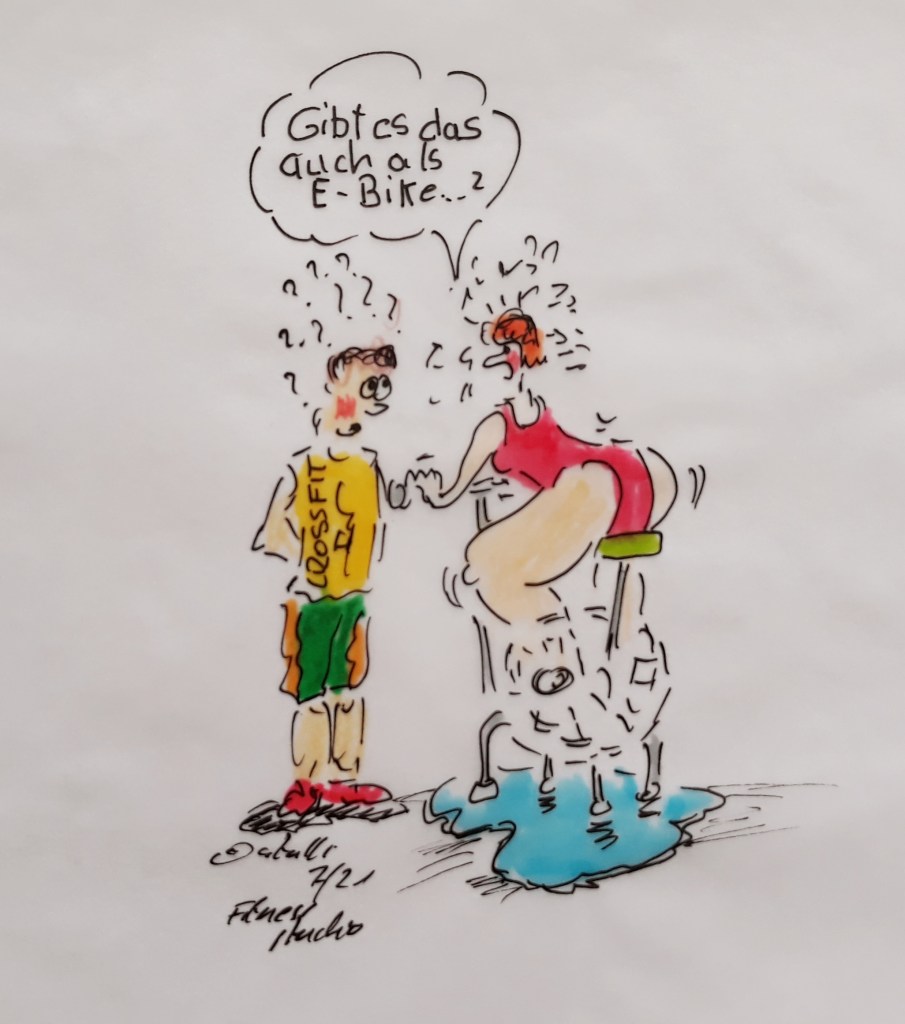 Das Fitnessstudio ist ein Egotempel, der Neid hat hier einen Platz gefunden. Jetzt aber kommt im Fitness-Studio ein wenig Mallorca-Feeling auf. Sie wissen doch – volles Studio, doch ein Fahrrad ist noch frei und das wird schnellstens reserviert – noch vor dem Umkleiden, was ja locker 30 Minuten dauern kann (bei den Mädels). Sie wissen wie das geht, wenn sie schon einmal Urlaub auf Mallorca gemacht haben: Punkt 1 man checkt sich in Studio ein; Punkt 2 Frau geht zum noch freien Fahrrad oder Laufband uns hinterlässt dort Handtuch und Trinkflasche; Punkt 3: nun geht es in die Umkleide – Männer brauchen dazu 4 Minuten (Ausnahmen gibt es selbstverständlich) Mädels brauchen dazu etwas mehr Zeit (ca. 20 Minuten ??).