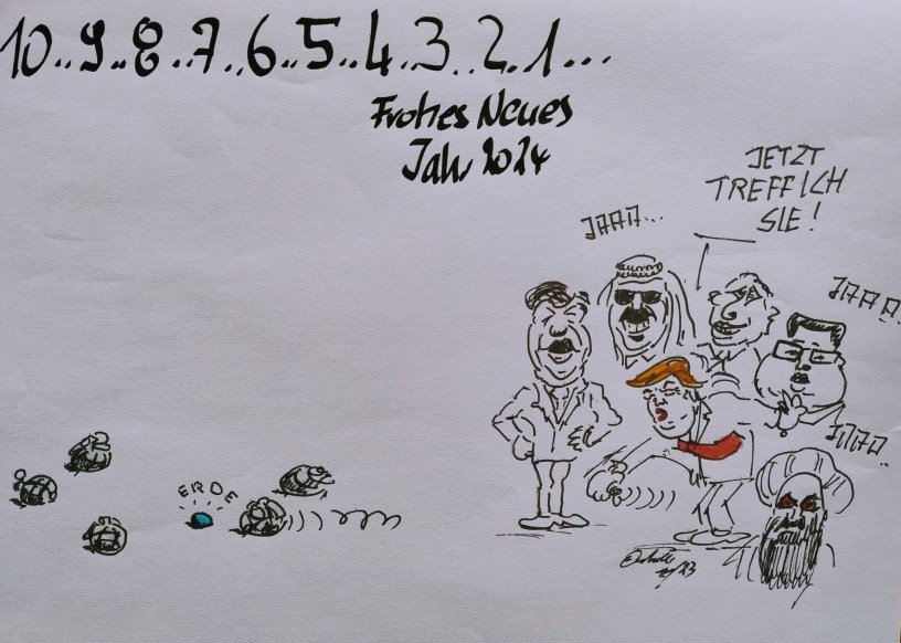 Wer die heutige Nachrichten liest, und sich dann über den Zustand unserer Welt ernsthaft Gedanken macht, dem wird wahrlich Angst und Bange! Neben Öl-, Wasser- und Brandkatastrophen, Fakes, sind da noch die (von Trump bis Putin, usw), die alles noch schlimmer machen. Wir müssen etwas tun, beim Klima, bei der Umwelt, und wir sollten unbedingt das gefährliche Böllern – mit Munition und mit Worten (um unsere Welt) – schnellstens beenden.