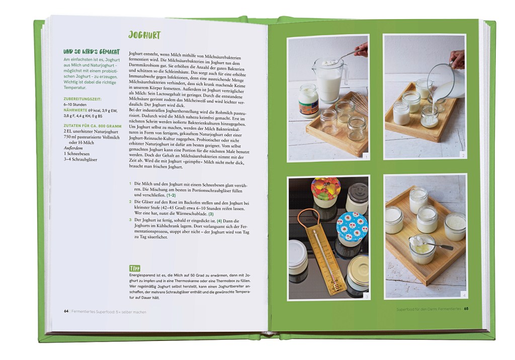 Es geht los mit Superfood für den Darm, mit 5 Rezepten zum selbstfermentieren. Dann kommen darmgesunde Frühstücksideen: Müsli-Varianten, leckere Aufstriche und Brot-Rezepte.