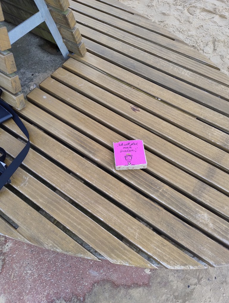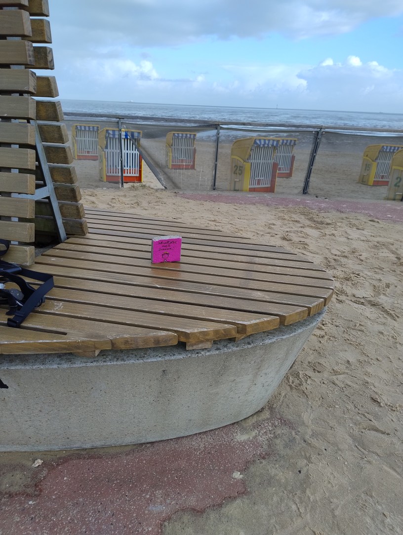Gefunden: Toller Platz, direkt am Meer. Jetzt heißt es nur noch warten, auf den oder die, die den Wanderstein weiter Wandern lassen.