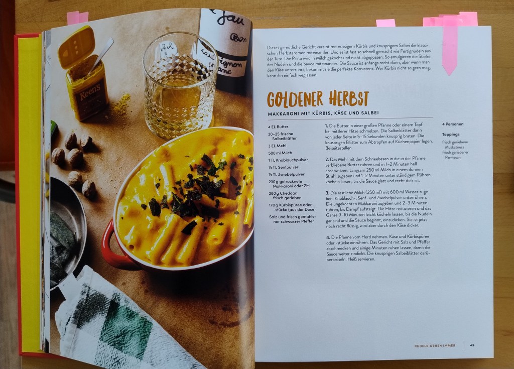 S. 45 – Goldener Herbst – Makkaroni mit Kürbis, Käse und Salbei