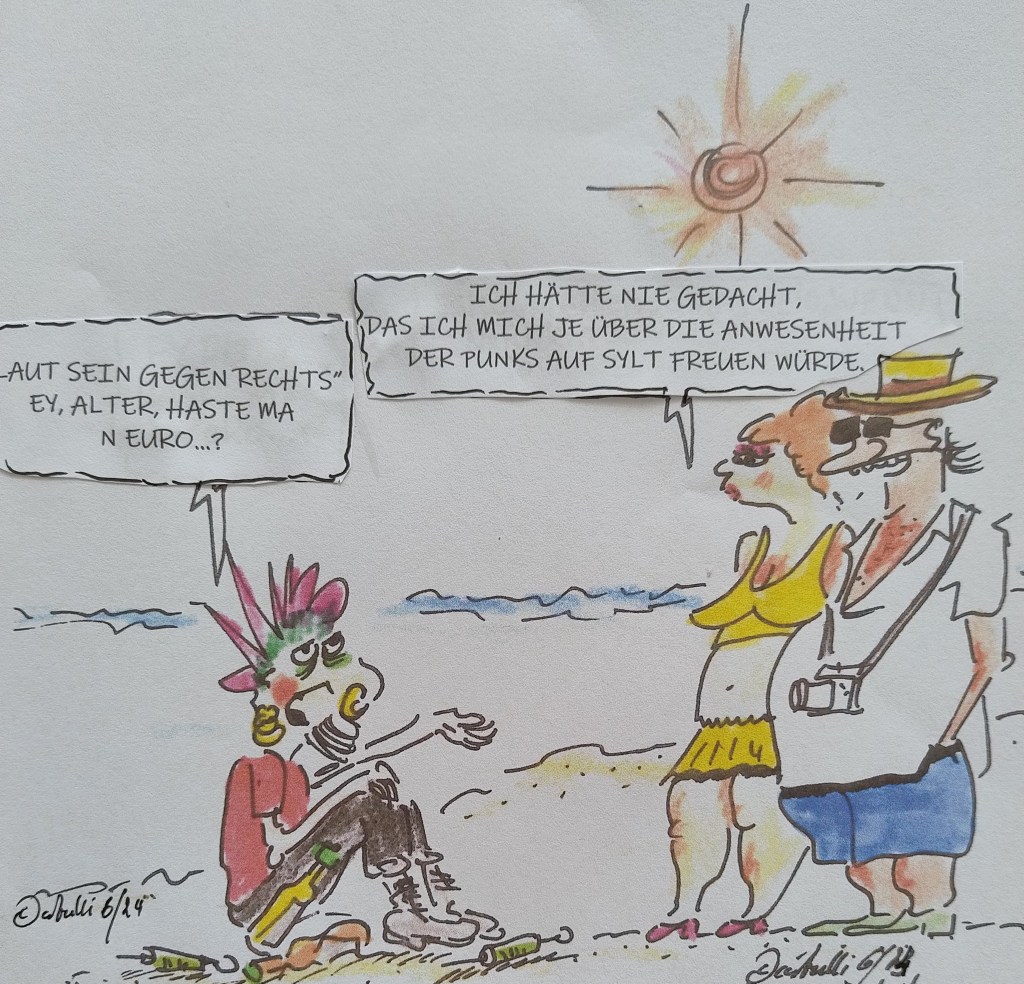 Demos gegen rechts: Punks zeigen Sylt-Nazis den Stinkefinger. Sylt kommt nicht zur Ruhe. Im Gegenteil: Das Wochenende verspricht ziemlich heiß zu werden – und das liegt nicht am Wetter. Insgesamt wird es wohl vier Protestveranstaltungen gegen rechts auf der beliebten Nordseeinsel geben. Auslöser der Proteste ist ein Video, das bundesweit Empörung ausgelöst hatte. Darauf ist zu sehen, wie Pfingstsamstag Gäste des Kampener Clubs „Pony“ zu dem Song „L’Amour Toujours“ rassistische Parolen grölten: „Ausländer raus“ und „Deutschland den Deutschen“.