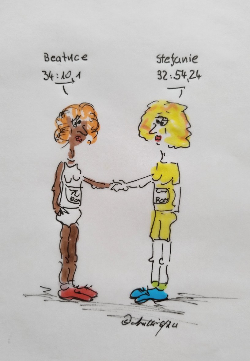 Leichtathletik Europameisterschaften 2024 in Rom. Heute, 21:30 das 10.000 Meter Finale der Damen. Hier der Zeitpunkt kurz vor dem Start, festgehalten durch unseren Karikaturisten.