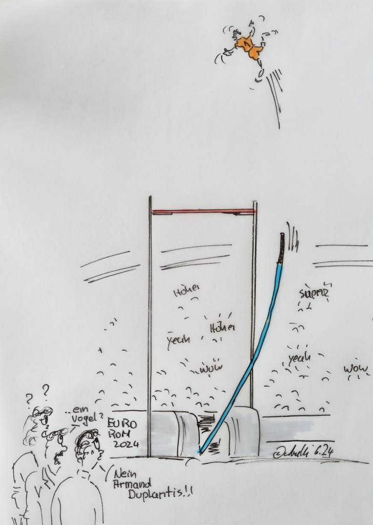 Leichtathletik Europameisterschaften 2024 in Rom. Heute, 20:20 Uhr Stabhochsprung der Männer mit der Flugshow des Armand Duplantis. Es geht bestimmt wieder hoch hinaus.