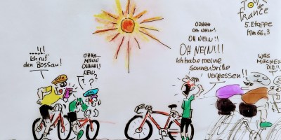 cartulli's Cartoon Rennrad und Mountainbike cartulli’s Tour de France-Cartoon 2024: Heute, die 4. Etappe von Pinerolo nach Valloire über 138 km. Um nach Frankreich zu kommen, wählte man einen „steinigen“, dafür aber kurzen Weg. Denn die 4. Etappe führt über den Aufstieg nach Sestriere, den „Grenzpass“ Col de Montgenevre sowie den Col du Galibier. Man (Extremläufer, Verrückte …!!) kann ihn auch laufend erklimmen, vom Col du Lautaret 2057 rauf auf den Col du Galibier. Könnt Ihr hier nachlesen. 2. Juli 2024 — Keine Kommentare