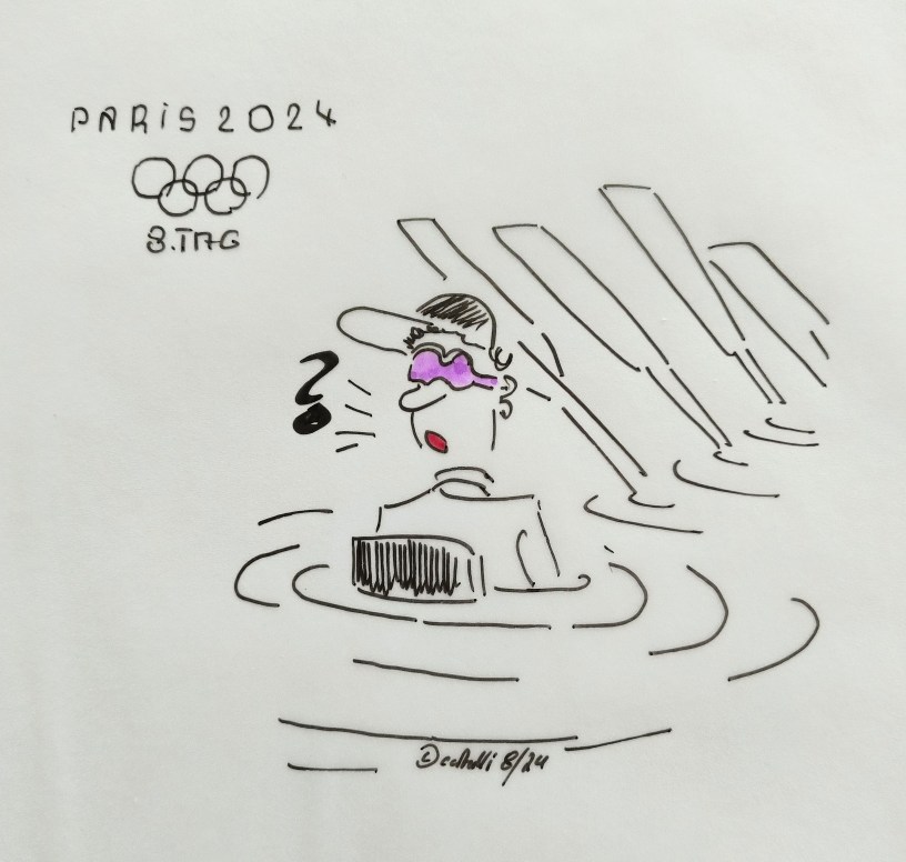 cartulli’s Olympia-Paris 2024-Cartoon: Heute 8. Tag; Samstag 03.08.24 – Rudern, Damen und Herren Achter – Olympiabilanz 64-mal Gold, 31-mal Silber und 29-mal Bronze – 2024 …?????