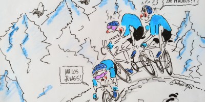 cartulli’s UCI Radsport-WM-Cartoon: Mannschaftszeitfahren Mixed Relay Männer/Frauen über 53,7 km am Mittwoch den 25. September. Die erste Runde wird von drei Männern gefahren, die zweite von drei Frauen desselben Landes. Die Runde beträgt 26,8 km mit 501 Höhenmetern.