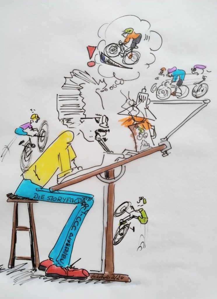cartulli’s UCI Radsport-WM-Cartoon: Die Storyfactory und das Cuxhaven-Cartoon-Center werden ab dem 22. September, die UCI Radsport-Weltmeisterschaft in Zürich, mit passenden Karikaturen (cartulli’s UCI Radsport-WM-Cartoon) begleiten. Viel Spaß.