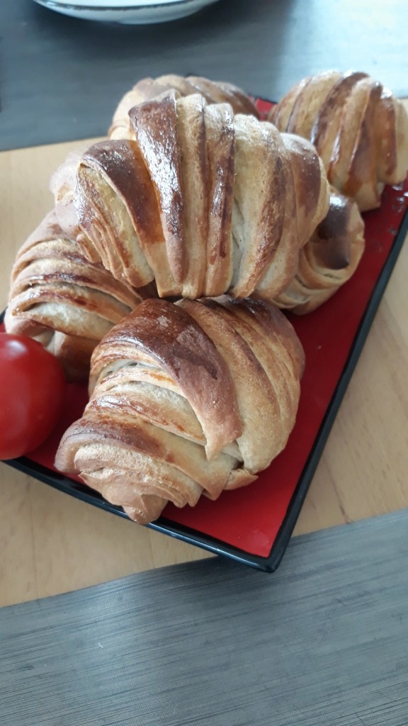 Hallo, an alle die jetzt gerade aufgestanden sind. Ich war, – trotz Sturm-Ankündigung – bei noch ruhigem Wetter, schon eine Runde am Strand laufen. Jetzt gibt es – nach einer warmen Dusche – eine leckere Tasse Kaffee und selbstgebackene (NICHT aufgebacken!!) Croissant zu Frühstück. Wünsche euch allen einen entspannten Mittwoch, bis Morgen!