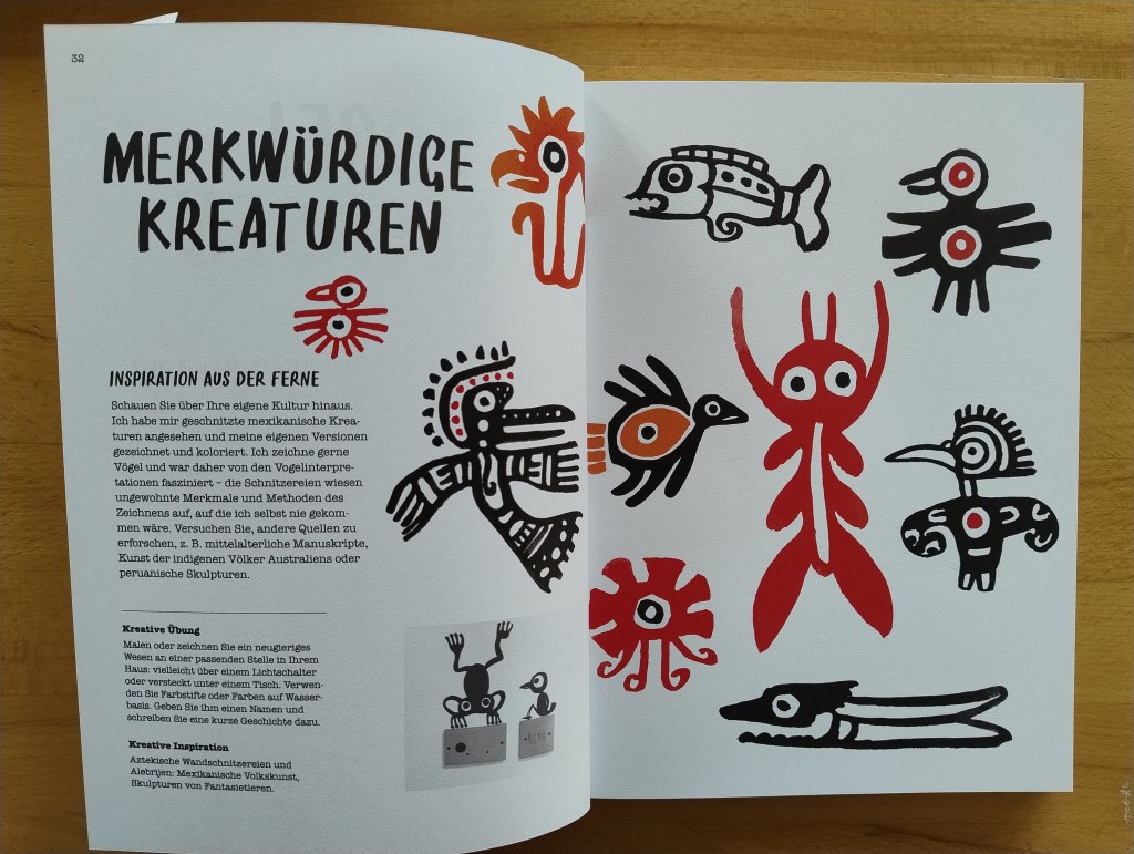 Besonders beeindruckend ist die Vielfalt der vorgestellten Techniken. Von Handlettering und Marmorieren über Gummistempeln bis hin zu Straßenfotografie und Skulpturen aus Fundstücken – für jeden Geschmack ist etwas dabei. Die Anleitungen sind klar und verständlich, sodass auch Anfänger problemlos damit zurecht kommen.