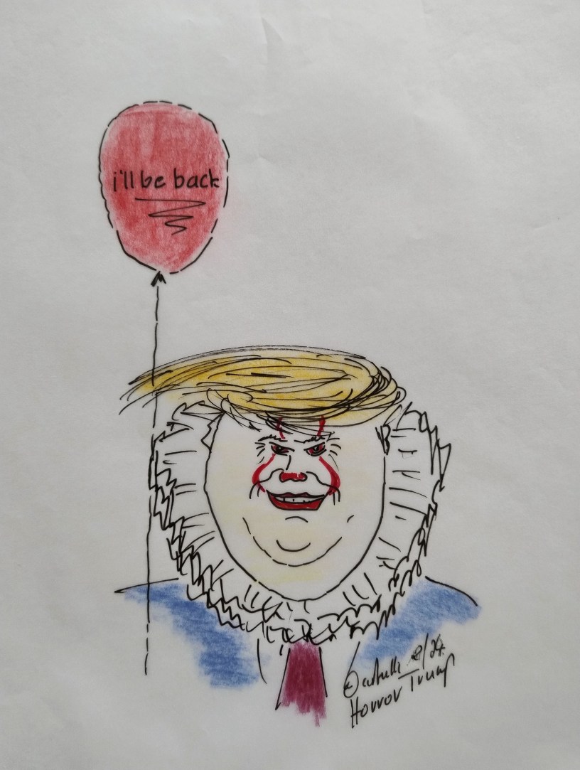 Die Rückkehr des Donald Trump – Gott behüte uns davor: Vier Jahre lang hat ein durchgeknallter Horror-Clown ein ganzes Land (und die Welt) ins Chaos gestürzt. Jetzt ist, seit einiger Zeit, das Grauen zurück. Donald Trump unternimmt einen weiteren Versuch, Präsident zu werden. Gott behüte uns vor dieser Wiederwahl im November!!!