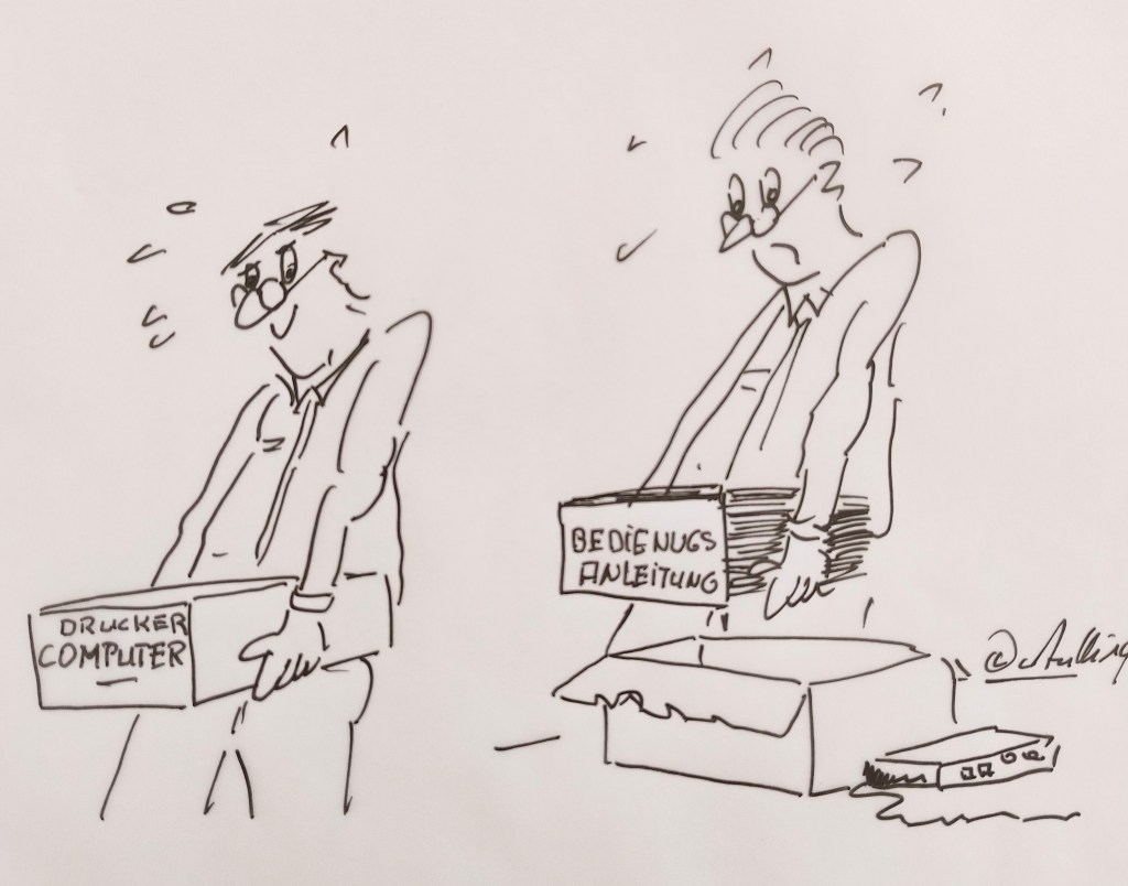 Ich kenne dies alles als alltägliche Qual aus privater Sicht: „Momentan ist es der neue Drucker, der keine Verbindung mit meinem Rechner eingehen möchte. Das bringt mich schier zum Verzweifeln. Aber es gibt natürlich noch viele andere Geräte.“