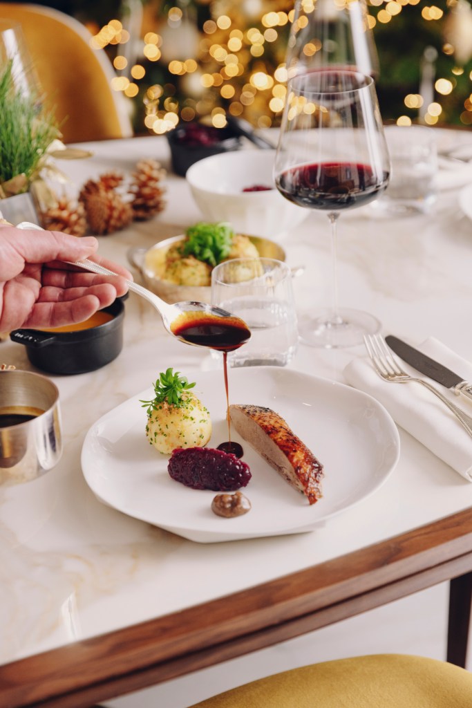 Die Tafelspitzsülze als Vorspeise und die Entenbrust mit Quarkpizokel und Rotkohlsalat als Hauptgang spiegeln perfekt seine Philosophie wider: ein Weihnachtsfest der Genüsse, das in Erinnerung bleibt. Durch die Auswahl der besten saisonalen Zutaten entsteht ein harmonisches Menü, das den Zauber der festlichen Jahreszeit einfängt. Ein stimmungsvoller Abend in den eigenen vier Wänden – ideal, um alle Speisen in Ruhe vorbereiten und den Heiligabend entspannt genießen zu können.