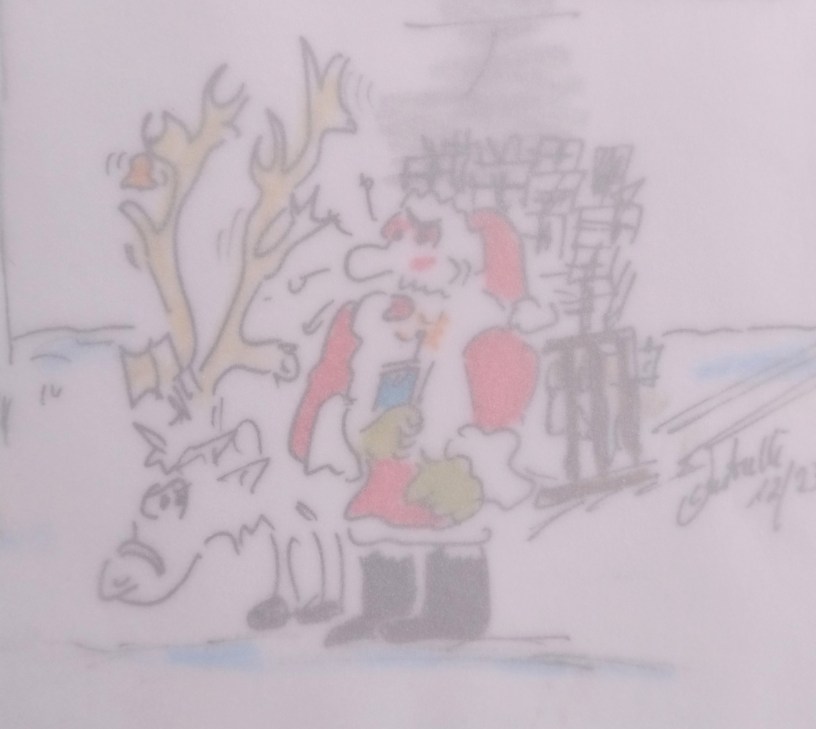 08.12.2024 – 2. Advent – Hier ein neues Bild vom Weihnachtsmann, auf seinem langen Weg – es gibt Probleme mit dem Rentier.