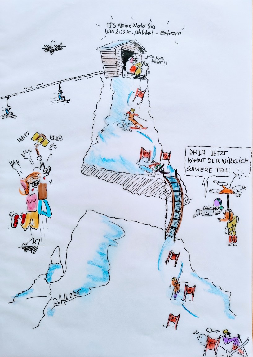 cartulli’s Sport-Momente des Jahres 2025. Heute 9. Februar FIS Alpine World Ski WM 2025 – Abfahrt der Herren. 3,6 km und 910 Höhenmeter müssen die mutigen Profis auf dem Steilhang bezwingen. Der Schweizer Franjo van Almen geht, neben Marco Odermatt, und anderen Rennläufern als Mitfavorit ins Rennen. *Abfahrt EXTREM*