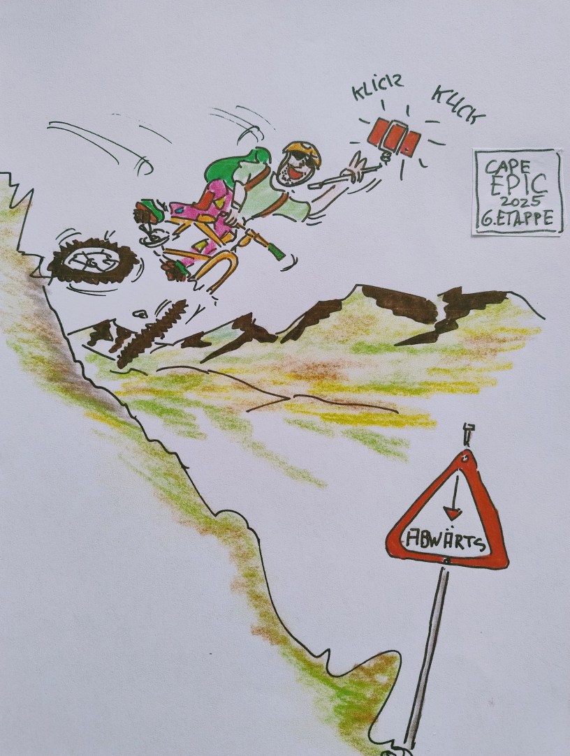 cartulli’s Sport-Momente des Jahres 2025. Aufzeichnungen mit spitzer Feder vom härtesten Mountainbike-Rennen der Welt. Heute am 22. März geht es weiter mit der 6. Etappe – Samstag, 22. März 2025 – Lourensford Wine Estate to Lourensford Wine Estate, Somerset West – Distance: 92 km – Höhenmeter: 2 850 – Schwierigkeitsgrad-Level: ****½