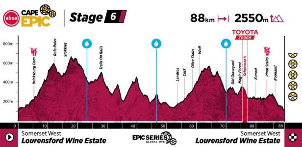 6. Etappe - Samstag, 22. März 2025 - Lourensford Wine Estate to Lourensford Wine Estate, Somerset West - Distance: 92 km - Höhenmeter: 2 850 - Schwierigkeitsgrad-Level: ****½