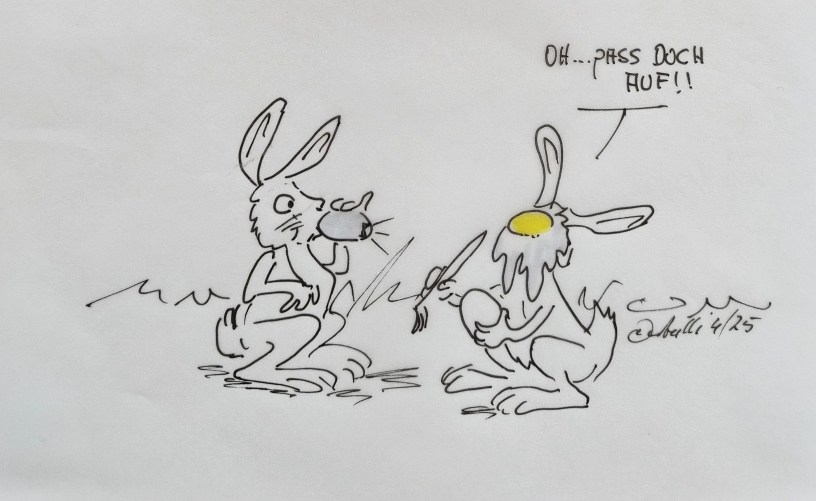 11.04.2025 – Es sind noch 10 Tage bis Ostern! Es wird eng! Es ist halt noch so viel vorzubereiten. Aber der Osterhase ist die Ruhe selbst.