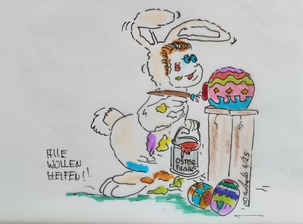 12.04.2025 – Jetzt geht es los! Der Osterhase entwirft das diesjährige  Eierdesign.