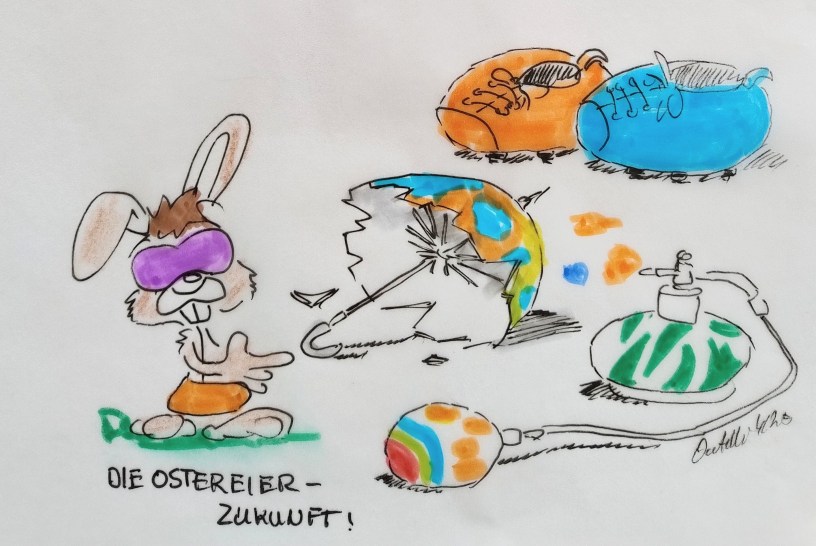 19.04.2025 – Ostersamstag – Der Osterhase muss Aktuell sein. Denn auch das Geschäft mit den Ostereiern muss mit der Zukunft gehen. Hier drei Beispiele.