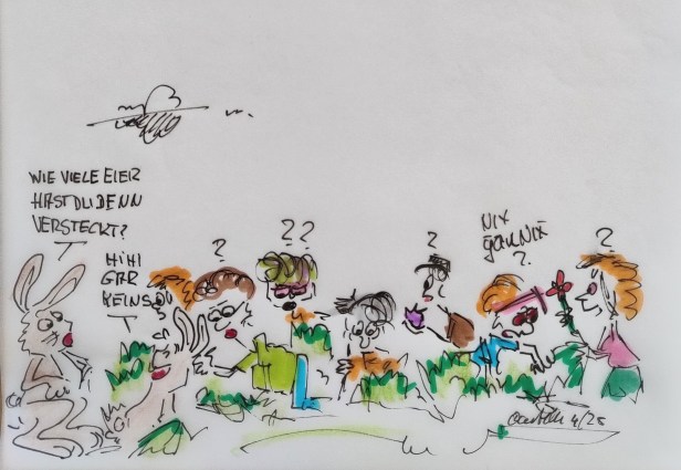 cartulli's Cartoon 21.04.2025 – Naja, wie so oft bekommt nicht jeder sein Osterei. Die Gründe sind vielfältig. Datum: 21. April 2025Autor: ullrichhoe 0 Kommentare 21.04.2025 – Naja, wie so oft bekommt nicht jeder sein Osterei. Die Gründe sind vielfältig. Teilen mit: Klicke, um auf X zu teilen (Wird in neuem Fenster geöffnet) X Klick, um auf Facebook zu teilen (Wird in neuem Fenster geöffnet) Facebook Mehr Klick, um auf LinkedIn zu teilen (Wird in neuem Fenster geöffnet) LinkedIn Gefällt mir Wird geladen …