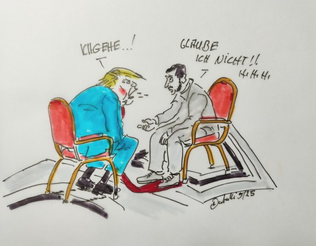100 Tage „Größten-Wahn“ mit Donald Trump: Sich groß und wichtig zu fühlen – das ist eine feine Sache. Leider haut es nicht immer hin. Siehe Donald Trump. Manchmal macht die Krawatte und ein Schuh darauf den Unterschied.