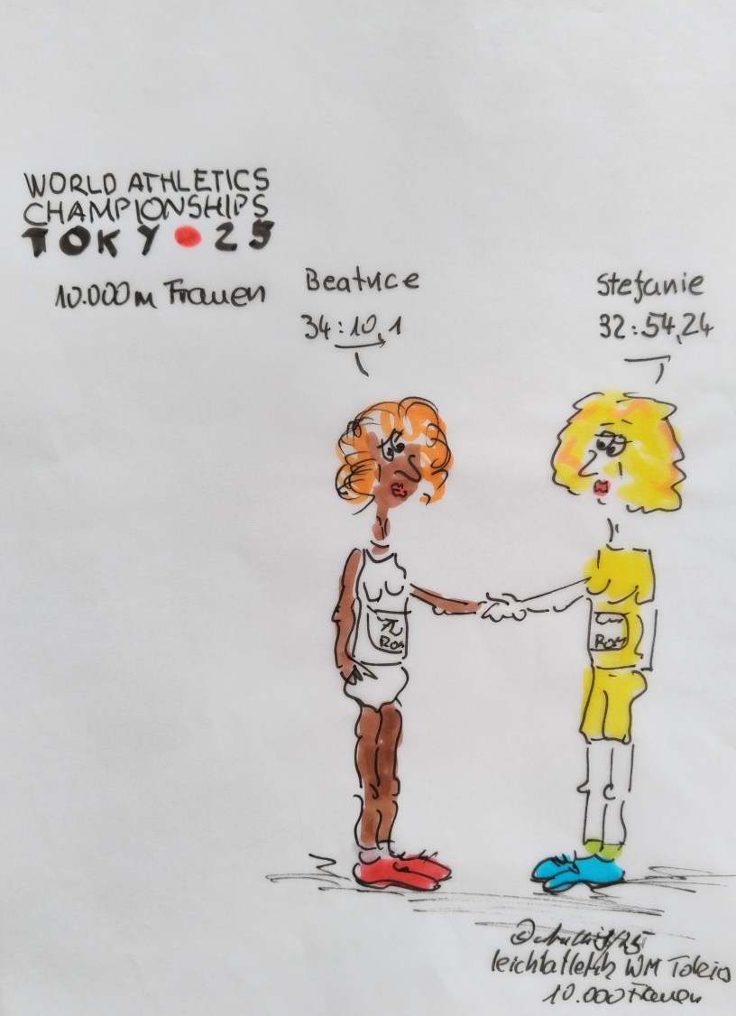 cartulli's Sportmomente 2025 Leichtathletik-WM 2025, Tokio. Samstag, 13. September: 35 km Gehen Männer; 35 km Gehen Frauen; Kugelstoßen Männer, 10.000 Meter Frauen; 4×400 Meter Mixed-Staffel. Datum: 13. September 2025Autor: ullrichhoe 0 Kommentare Leichtathletik-WM 2025, Tokio. Samstag, 13. September: 10.000 Meter Frauen. Teilen mit: Auf X teilen (Wird in neuem Fenster geöffnet) X Auf Facebook teilen (Wird in neuem Fenster geöffnet) Facebook Mehr Auf LinkedIn teilen (Wird in neuem Fenster geöffnet) LinkedIn Gefällt mir Wird geladen …