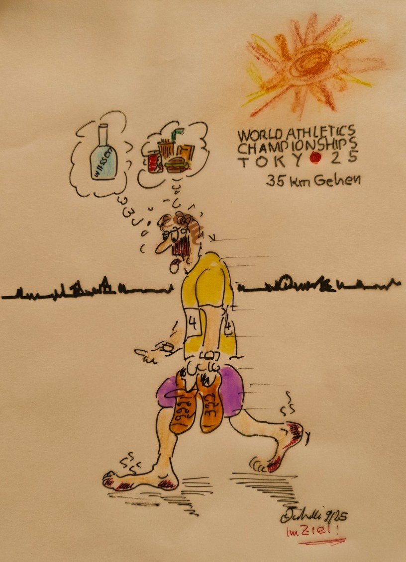 Leichtathletik-WM 2025, Tokio. Samstag, 13. September: 35 km Gehen Männer. Aufgrund der zu erwartenden hohen Hitze in der japanischen Hauptstadt Tokio beginnen bei der Leichtathletik-Weltmeisterschaft alle Straßenrennen der ersten drei Wettkampftage eine halbe Stunde früher als geplant. Alle Wettbewerbe fangen demnach um 0.30 Uhr deutscher Zeit statt um 1.00 Uhr an.