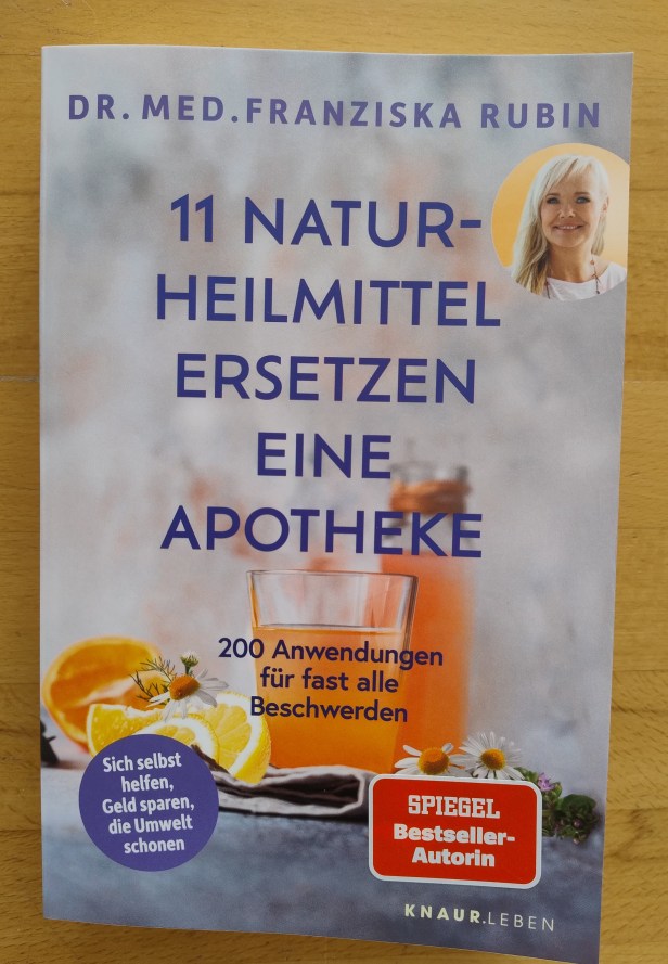 Warum ich das Buch empfehle: Wieder ein lesenswertes Buch von der Autorin Dr. med. Franziska Rubin, verständlich geschrieben und vielen brauchbarer Tipps, ich bin begeistert. In diesem Naturheilkunde-Ratgeber mit über 200 einfachen Rezepten für die wichtigsten Beschwerden von A bis Z erklärt die Auitorin, wie die Hausmittel angewendet werden bei Arthrose, Bronchitis, Kopfschmerzen, Migräne bis hin zu Schlafstörungen oder Schmerzen. Die Wirksamkeit der vorgeschlagenen Anwendungen ist durch wissenschaftliche Studien belegt. Mit diesen 11 Naturheilmitteln ist man für zahlreiche gesundheitliche Herausforderung gewappnet. Drei Beispiele:
