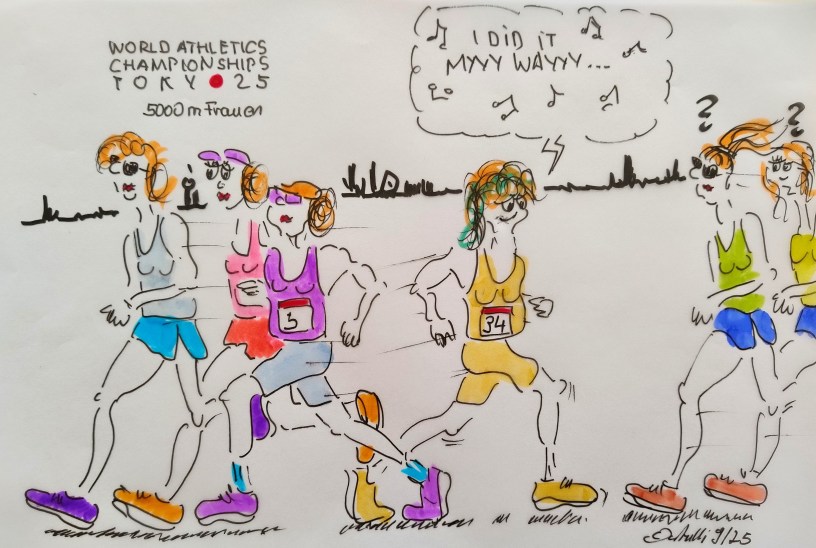 Leichtathletik-WM 2025, Tokio. Samstag, 20. September 2025. Heute: 5.000 Meter Frauen. Außerdem: 20 km Gehen Männer. Außerdem: 20 km Gehen Frauen, Kugelstoßen Frauen, Speerwurf Frauen, Siebenkampf Frauen, 800-Meter-Lauf, , 800 Meter Männer.