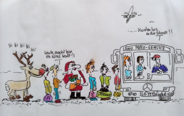 Auch der Weihnachtsmann nimmt dieses Angebot sehr gerne an. (Cratoons: cartulli 10/25 – Cuxhaven-Cartoon-Center – Die Storyfactory)
