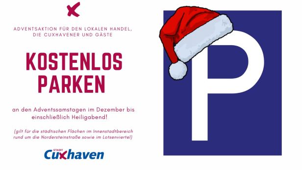 Cuxhaven bietet kostenfreies Parken auf den städtischen Flächen in der Innenstadt (rund um die Nordersteinstraße) und im Lotsenviertel an den Adventssamstagen im Dezember an. Diese Regelung gilt bis einschließlich Heiligabend, um die Unterstützung des Einzelhandels zu fördern.