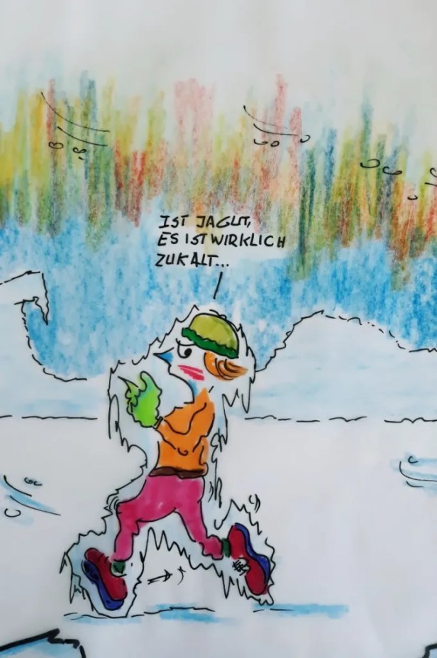 Heute morgen ohne meine Winterlaufjacke, ohne Handschuhe und nur mit Basecap raus auf meine Laufrunde an den Strand – es SCHNEIT. Und da war sie, meine Begegnung der besonderen Art. Ein Eisbär schüttelte nur den Kopf, eine Gruppe Pinguine starrten mich erstaunt an. Ich kann nur sagen, Guten Morgen eiskaltes, verschneites Cuxhaven. Morgen dann aber mit Mütze, Handschuhe, Nasenschutz und dicker Laufjacke – wahrscheinlich schneit es dann nicht.