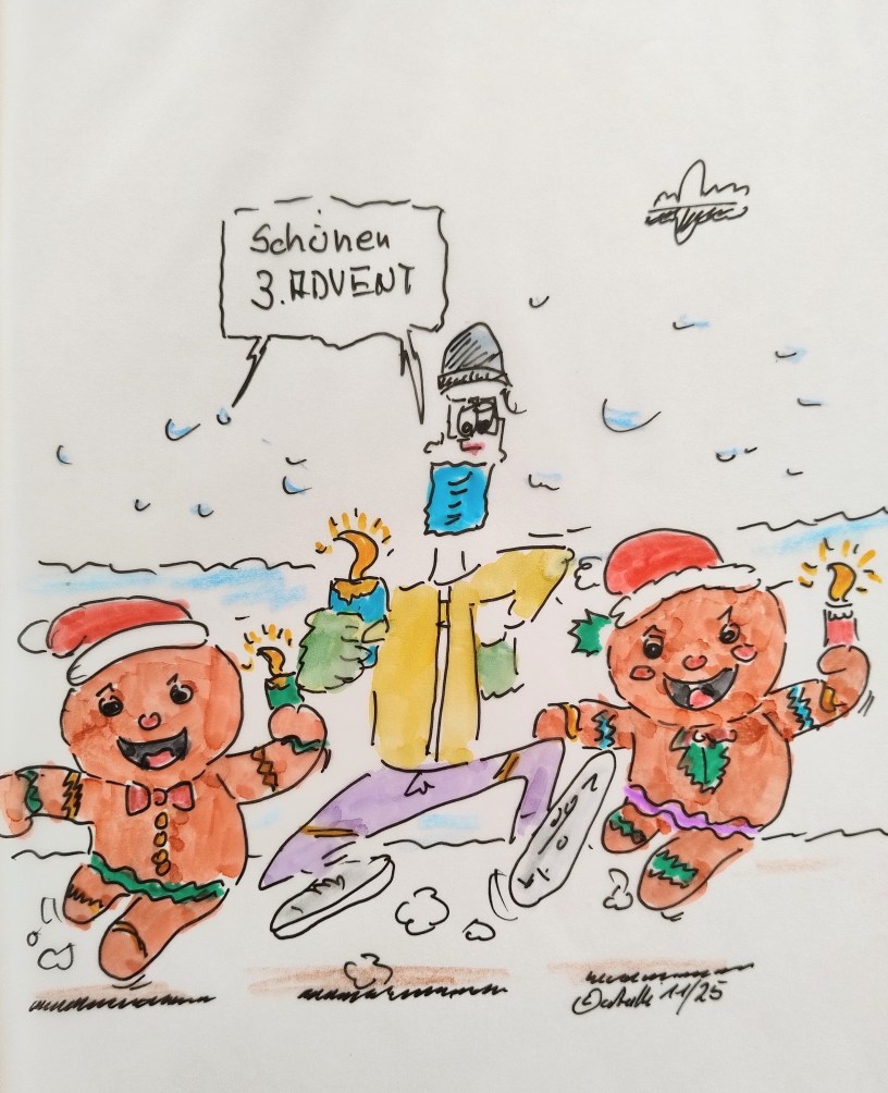 Cuxhaven live (Cartoon's) 3. Advent – nicht mehr lange, bis zum Heiligabend – euch allen eine entspannte Adventzeit. Datum: 14. Dezember 2025Autor: ullrichhoe 0 Kommentare 3. Advent – nicht mehr lange, bis zum Heiligabend – euch allen eine entspannte Adventzeit. Teilen mit: Auf X teilen (Wird in neuem Fenster geöffnet) X Auf Facebook teilen (Wird in neuem Fenster geöffnet) Facebook Mehr Auf LinkedIn teilen (Wird in neuem Fenster geöffnet) LinkedIn Gefällt mir Wird geladen …
