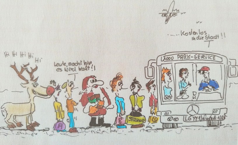 21. 12.2025 – 4. Advent – Ankunft in Cuxhaven – der Weihnachtsmann nutzt das Angebot des „kostenlosen Parkens“ und der kostenlosen Busnutzung.