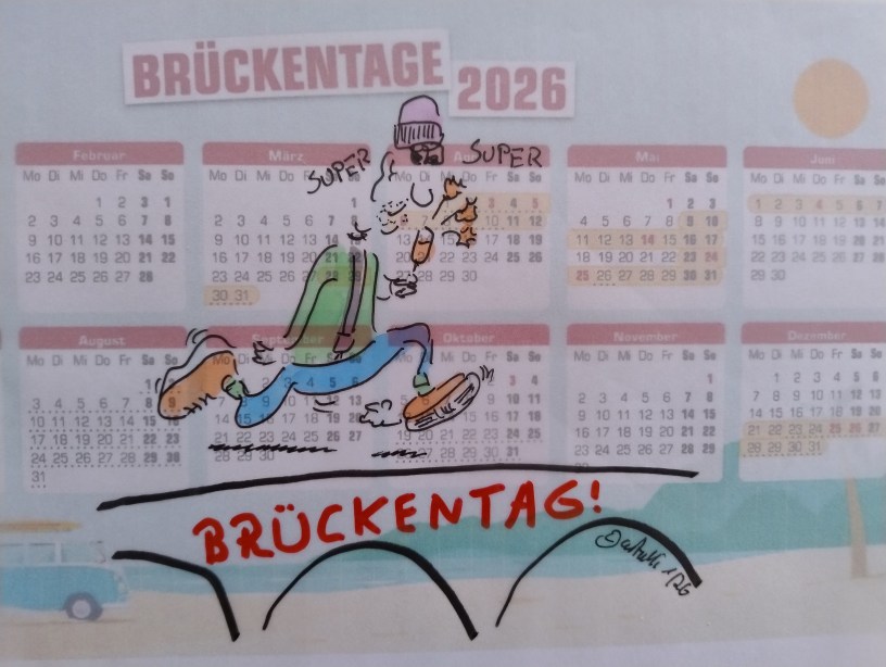 Die Feiertage im kommenden Jahr liegen nicht besonders arbeitnehmerfreundlich – der 3. Oktober oder der 26. Dezember zum Beispiel fallen auf einen Samstag. Wer möglichst viel freie Zeit für den Urlaub herausholen möchte, sollte darauf achten, die Brückentage clever zu nutzen. Die Rechnung: Bei schlauer Ausnutzung aller Brückentage 2026 (wenn mein Chef mitspielt) hole ich aus 21 Urlaubstagen rund 51 freie Tage heraus (Rechnung unten).