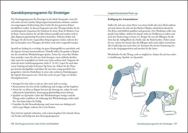 Worum geht es: Muskeln sind einer der entscheidenden Longevity-Faktoren. Wer dem altersbedingten Abbau von Muskelmasse nicht durch Krafttraining vorbeugt, riskiert ein erhöhtes Sturzrisiko und zunehmende Gebrechlichkeit. Aber um fit, kräftig und schmerzfrei zu sein, müssen keine schweren Gewichte im Fitnessstudio gestemmt werden. Muskelkraft, Stabilität und Koordination können in jedem Alter einfach zu Hause trainiert werden. Hier besteht kein Verletzungsrisiko, anders als bei intensiven Work-outs oder überforderndem Krafttraining im Studio. Der renommierte Wiener Arzt Dr. Peter Poeckh führt Sie in seinem neuen Buch zu mehr Kraft und Stabilität in Ihrem Körper. So können Sie gezielt bestimmte Regionen kräftigen. Darüber hinaus machen die Ganzkörperprogramme für Anfänger und Fortgeschrittene den Einstieg besonders leicht. Unabhängig von Alter und Fitnesszustand können damit alle Menschen von einfachen, aber effektiven Übungen profitieren, die zu schnellen und spürbaren Erfolgen führen. Damit schaffen Sie langfristig die besten Voraussetzungen für einen gesunden und schmerzfreien Bewegungsapparat.