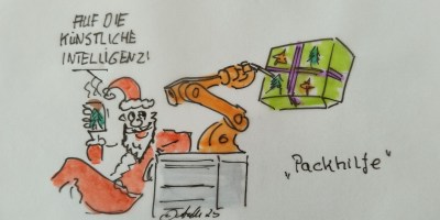 26.11 – Der Weihnachtsmann auf dem Weg nach Cuxhaven: Es wird langsam eng! Es ist halt noch so viel vorzubereiten. Aber der Weihnachtsmann ist die Ruhe selbst, denn er hat KI-Packhilfe.