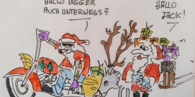 27.11 – Der Weihnachtsmann auf dem Weg nach Cuxhaven. Wie immer fehlt das Rentier. Doch es ist schnell gefunden. Alles ist ganz entspannt.