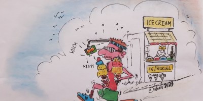 Meine spektakulärsten Selfies: Pfiffige Idee – zwei Eis essen, Laufen und ein Selfie machen ….. geht!