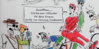 cartulli's Cartoon cartulli’s Tour de France-Cartoon – 14. Etappe: In den drei Wochen der Tour, gibt es hier „cartulli’s Tour de France-Cartoon“. Schaut regelmäßig rein und lasst euch überraschen. Heute, die 14. Etappe Annemasse – Morzine Les Portes du Soleil (151,8 km) – sehr schwer nach oben, und sehr schnell (schwer) nach unten, Ein Bergfahrer mit viel Mut und guten Abfahrer-Qualitäten könnte heute einen entscheidenden Zeitgewinn herausfahren. 15. Juli 2023 — Keine Kommentare