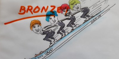 Die Winter-Olympiade – BEIJING 2022 – läuft. Heute gibt es einen neuen „cartulli’s Olympia-Cartoon“. Die deutschgen Skispringen haben Bronze im Teamwettbewerb gewonnen. Karl Geiger, Markus Eisenbichler, Constatin Schmid und Stephan Leyhe mußten sich nur Österreich und Slowenien geschlagen geben. Toll, es siegten die wirklich Besten.
