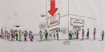 cartulli’s Corona-Cartoon: Die letzte Toilette vor dem Impfen!!! Wichtige Informationen müssen halt sein.
