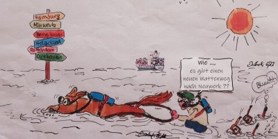 NEUER CUXHAVEN-CARTOON: Wattretter vor Neuwerk – wenn es schon fast zu spät ist!