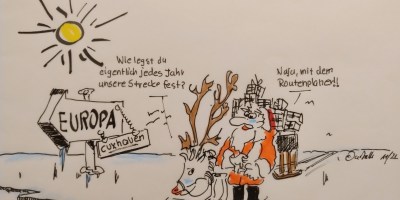 Der Weihnachtsmann auf dem Weg nach Cuxhaven. Es ist 26.11.2024 – Das Rentier ist gefunden. Alles ist noch ganz entspannt.