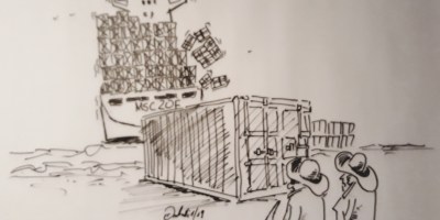 Im Sturm hat der Containerriese MSC Zoe in der Nordsee runde 270 Container verloren. Einen Teil der Container wurde an den Stränden der Westfriesischen Insel angespült. Ein Thema für den Cuxhaven-Cartoon.