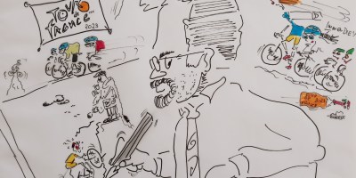 cartulli’s Tour de France-Cartoon – Heute die 21. Etappe: Saint-Quentin-en-Yvelines – Paris Champs-Élysées (115 km). Die Triumphfahrt des Siegers 2023 – bevor es auf die altbekannte Strecke mit dem Ziel auf der Champs-Élysées geht.