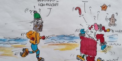 Es ist 8:00 Uhr, der 25. Dezember 2023 – und ich bin auf meiner Laufrunde am Duhner Strand. Warme Laufhose, Handschuhe, dicke Jacke, Tuch für das Gesicht, Schutzbrille – und dann geht’s raus. Und wen treffe ich dort? – den Weihnachtsmann beim Abtrainieren der Plätzchen-Kilos.